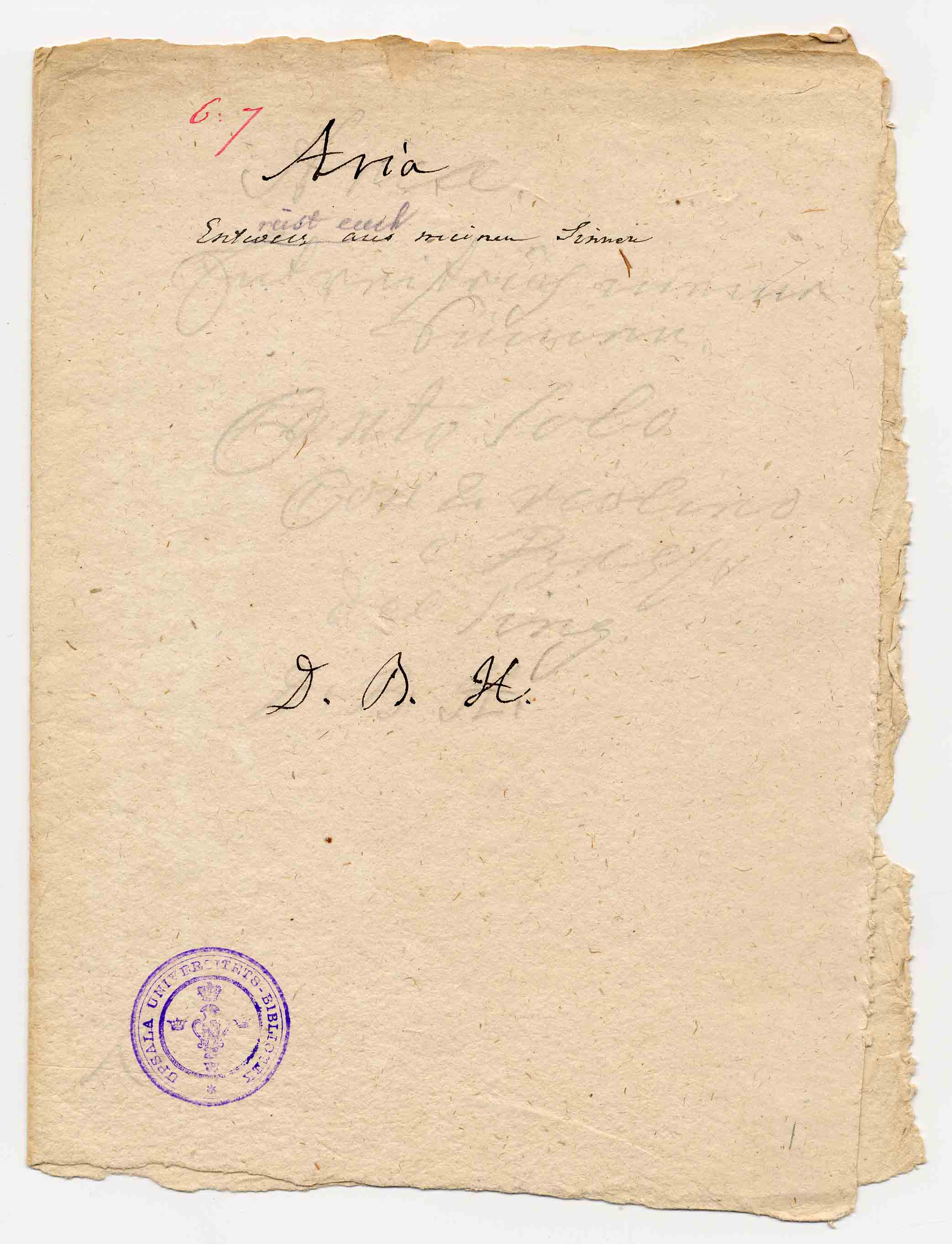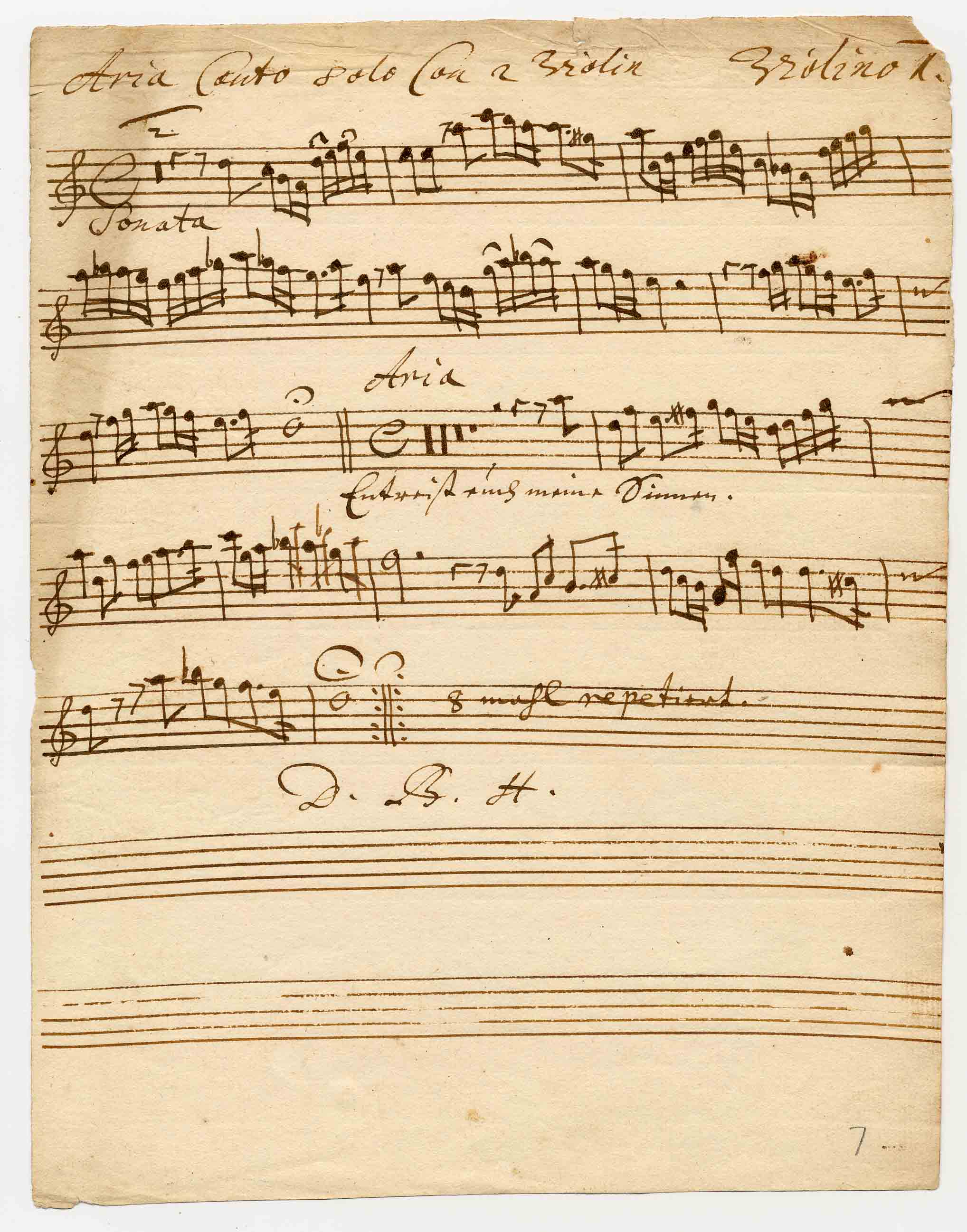 - Aria / Entreist euch meine Sinnen und steiget / welcken ab/ canto solo Con 2 violini / di Sig: / D. B. H.