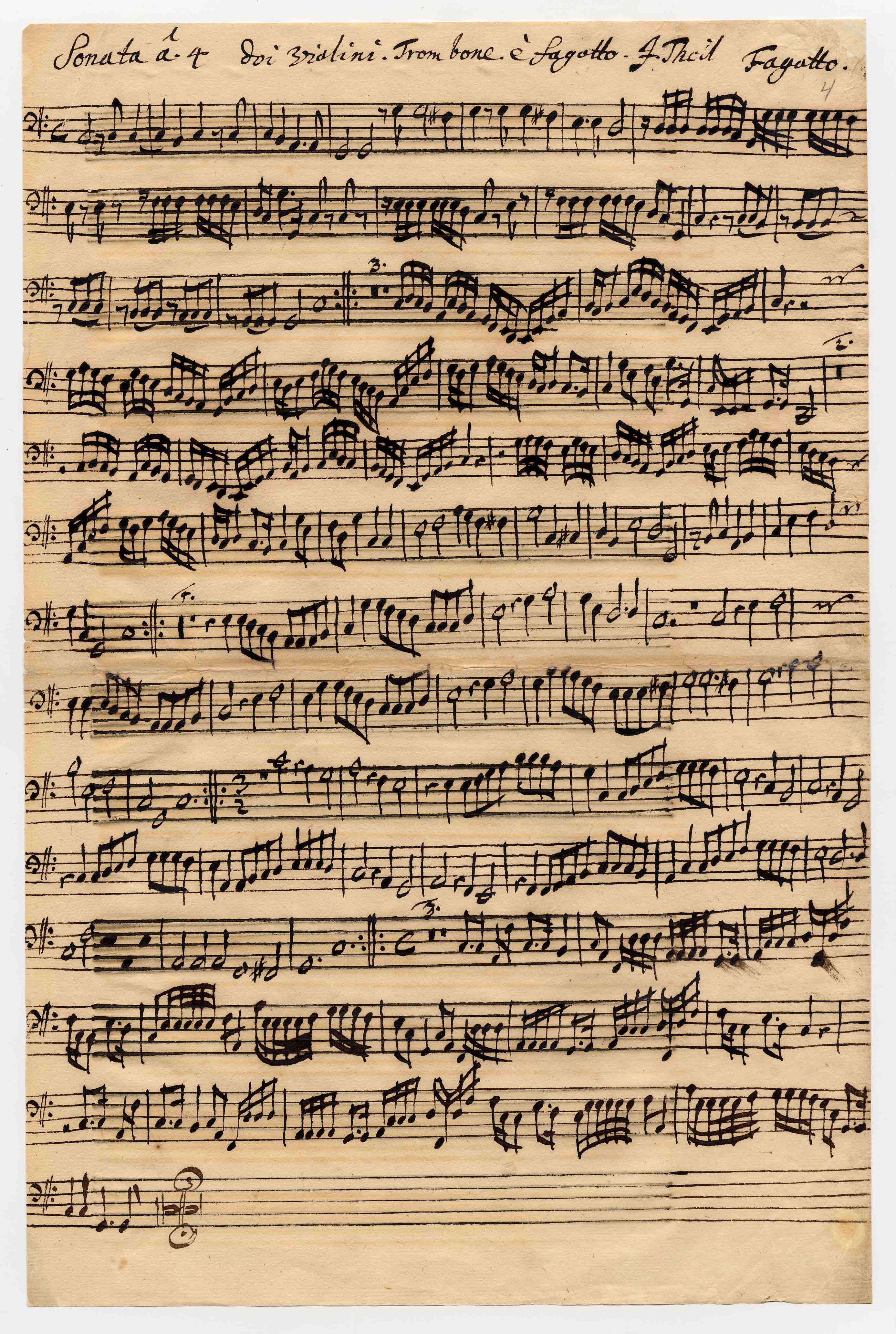 - Sonata. â. 4. doi Violini. Trombone. è fagotto di J Theil