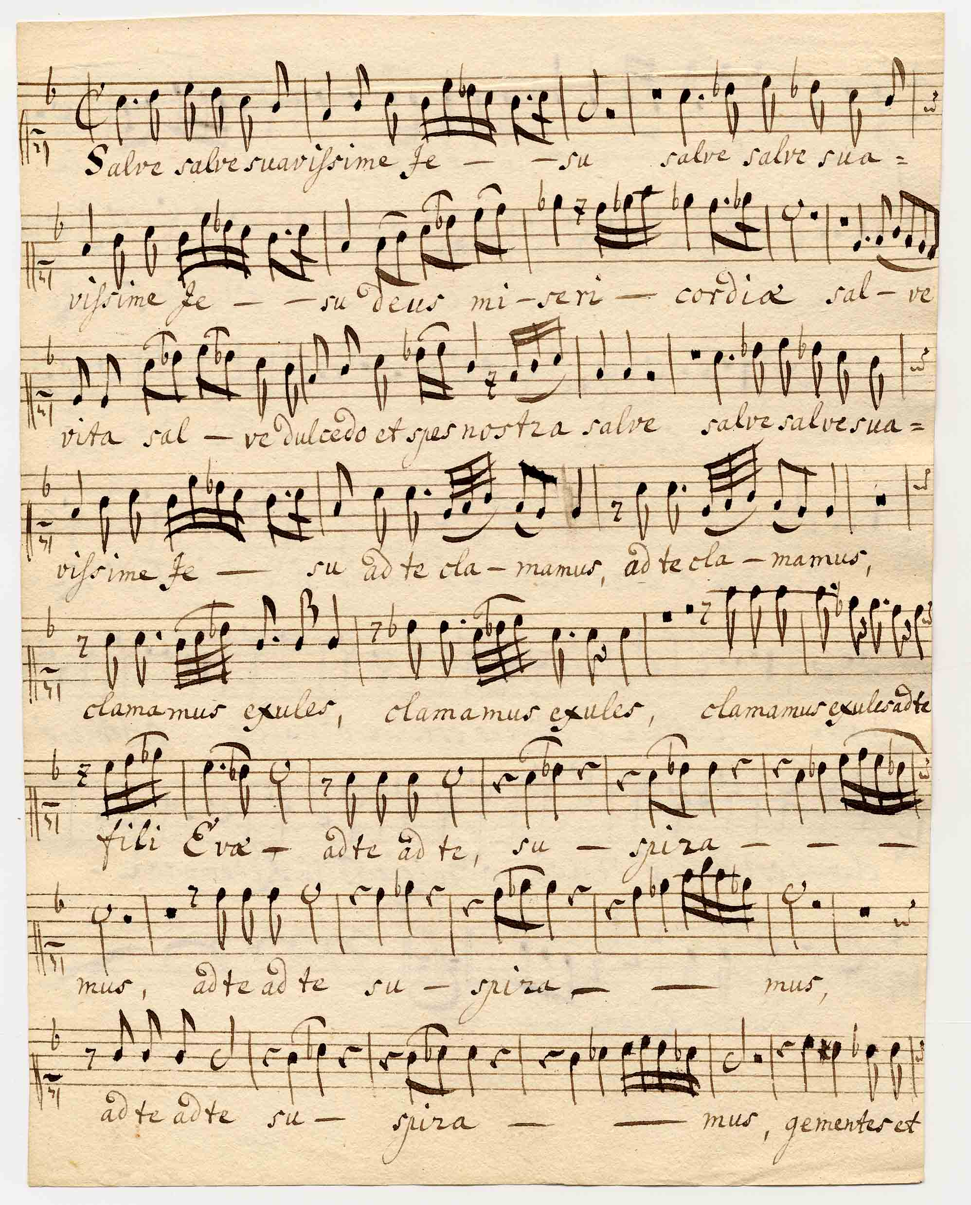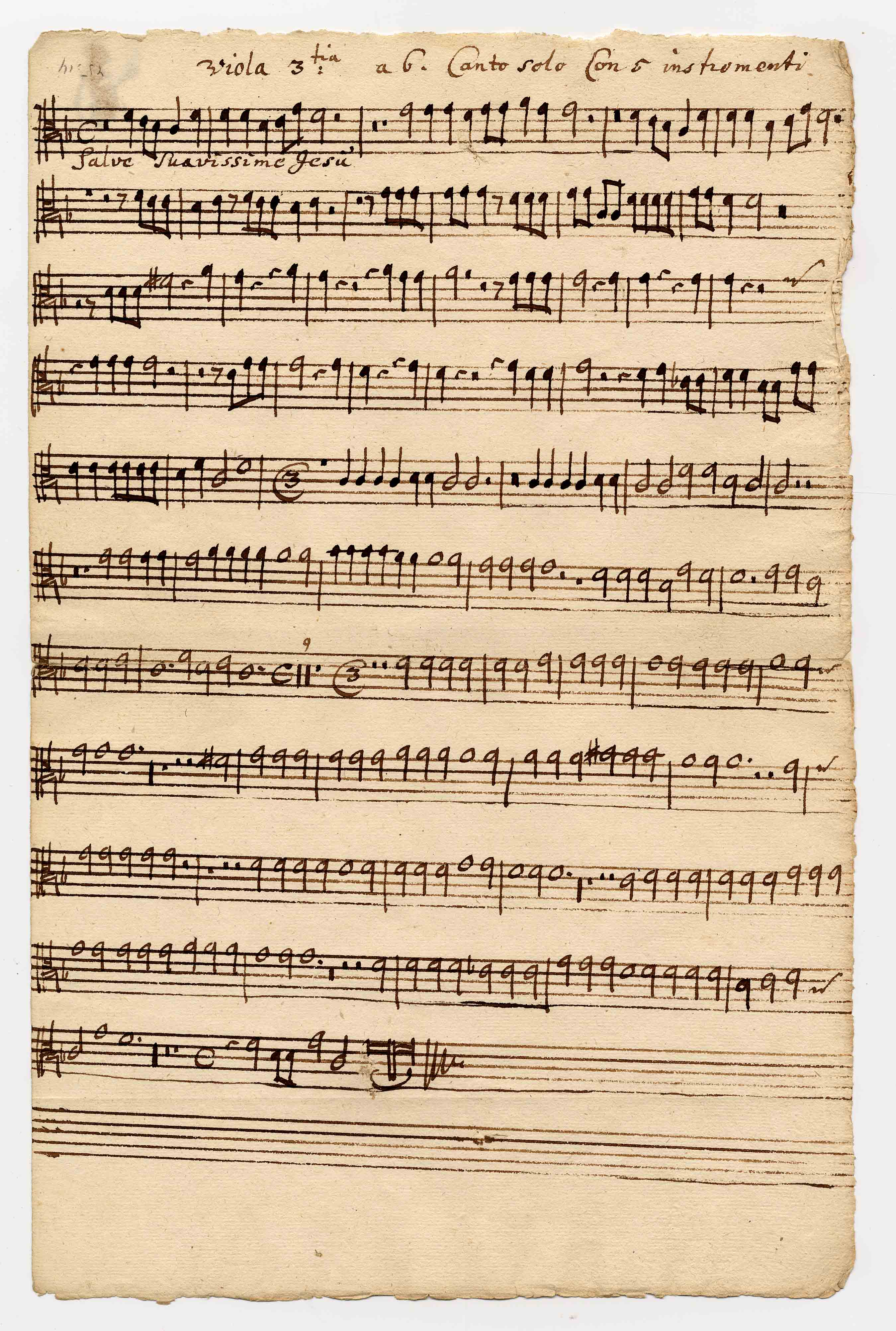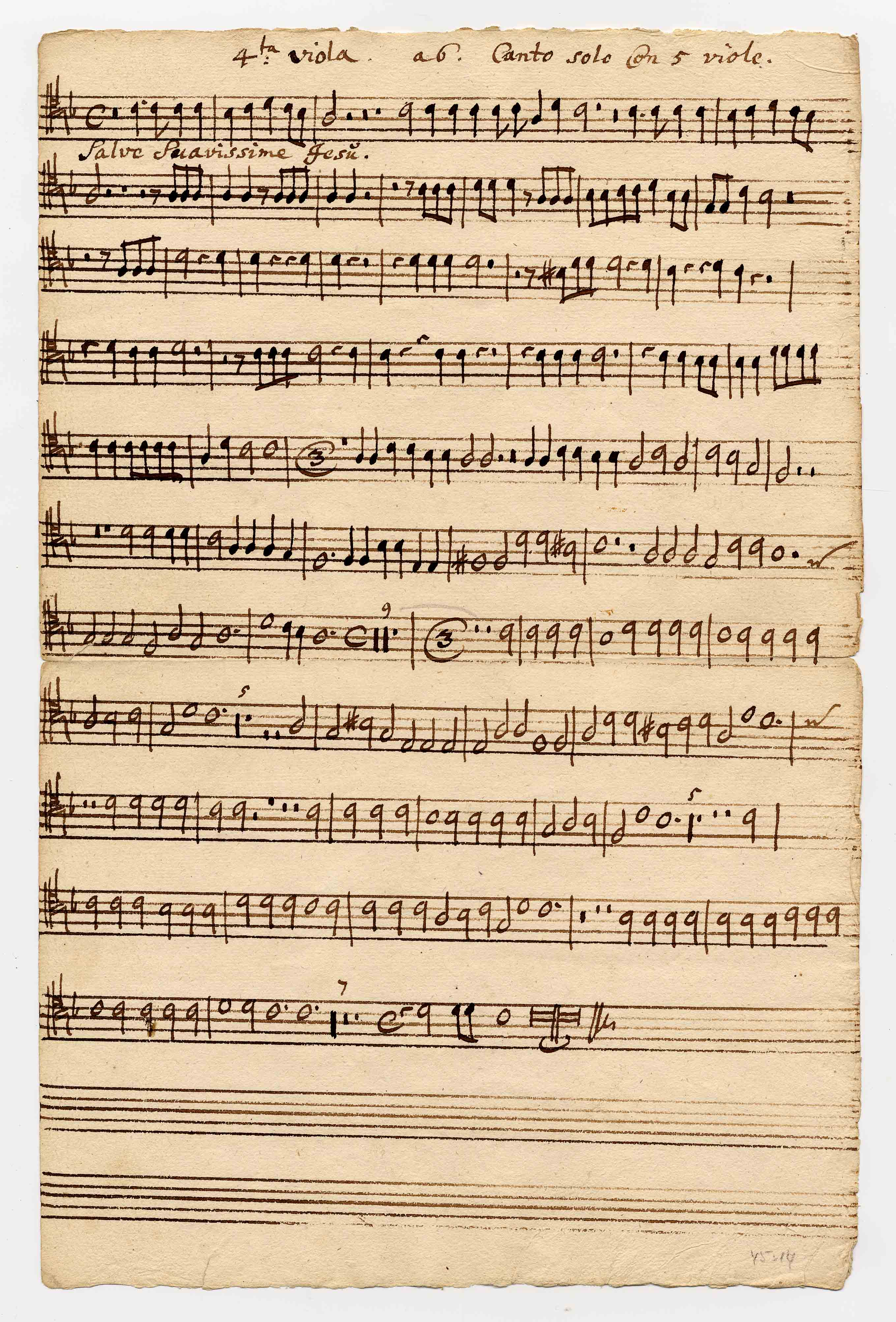 Source information Shelf mark vmhs 77:22 Full title 9./ Salve Salve Sua/ vissime Jesu./ C. solo e 5 instrm. Scoring S 2vl 2vla vlne bc Tinten No 0 Original genre Original feast Literature Source comments The four last measures are written on a little piece of paper (120x60mm) fixed to fol. 25.