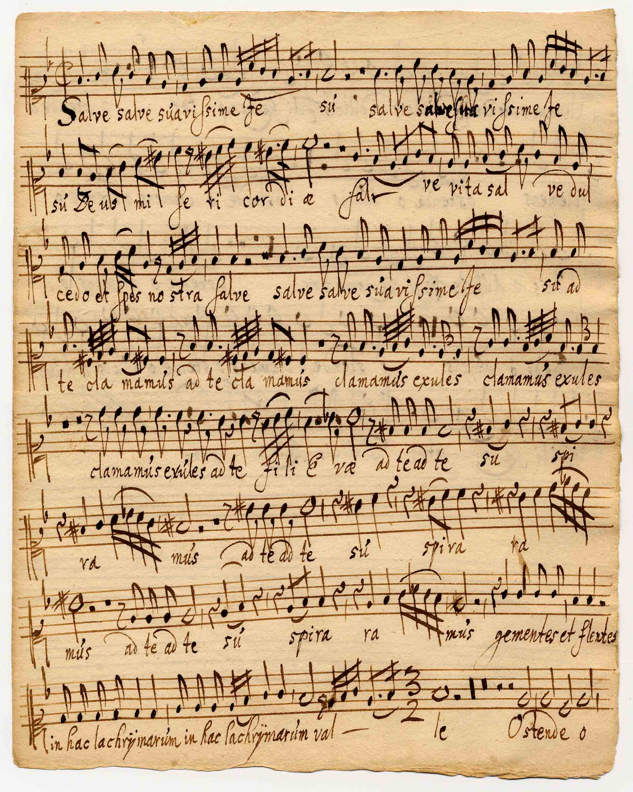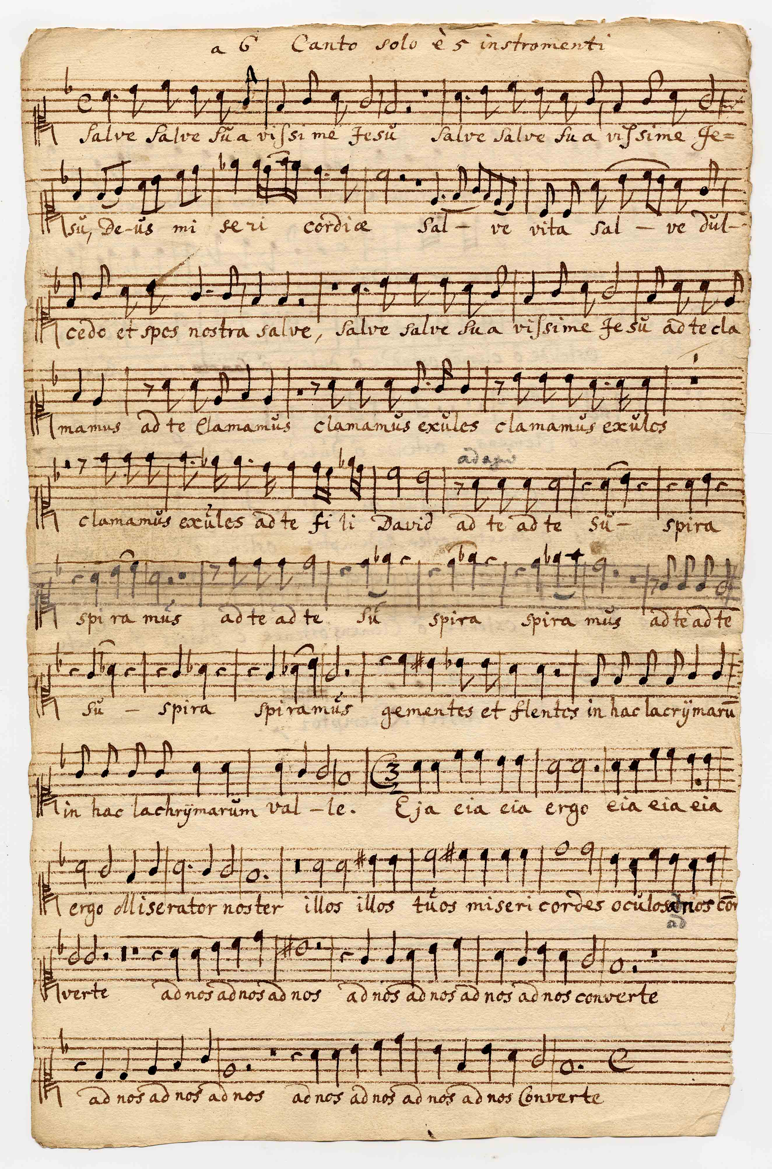 The composition is however included in Plawenn's "Sacrae nymphae duplicium aquarum in dei et divorum laudes, a 3. 4. 5. & 6. vocibus & instrumentis animatae" (Innsbruck 1659). Literature RISM P 2603 (1659) Manuscript concordance Work comments Original text in print: Salve regina. A Z(?) M G Abbatini, Antonio Maria Accorona, Padre Fr. Ant. Agricola, Georg Ludwig Ahle, Johann Rudolf Albinoni, Tomaso Giovanni Albrici, Vincenzo Anonymous Antonelli, Abundio Arigoni, Giacomo Ariosti, Attilio Arnold, Georg Aschenbrenner, Christian Heinrich Astorga, Emanuele Gioacchino d' Aufschnaiter, Benedict Anton Bach, Johann Christoph Bart, Guillaume Bartoli, Erasmo Bassani, Giovanni Battista Battista, ? Becker, Dietrich Beer, Johann Belleville, Jacques de Benedictus a Sancto Josepho Benevoli, Orazio Bernardi, Stefano Bernhard, Christoph Bernier, Nicolas Bertali, Antonio Bertin de la Doué, Toussaint Bettella, Paolo Bicilli, Giovanni Bigaglia, Diogenio Bleyer, Georg Bononcini, Giovanni Bontempi, Giovanni Boretti, Giovanni Antonio Brade, William Braun, Andreas Braun, Johann Georg Franz Briegel, Wolfgang Carl Brossard, Sébastian de Bull, John Buonamente, Giovanni Battista Burckhardt, J.V. Busbetzki, Lovies Buxtehude, Dieterich Byrd, William Bütner, Crato Campra, André Capella, Francisco Capponi, Gino Angelo Capricornus, Samuel Friedrich Cardarelli, Francesco Carisio, Giovanni Carissimi, Giacomo Casati, Gasparo Cazzati, Maurizio Cecchelli, Carlo Cecconi, Alexandro Cesarini, Carlo Francesco Cesti, Remigio Cesti, Antonio Cifra, Antonio Cocci, Giovanni Collasse, Pascal Conradi, Johann Georg Constantin, Louis Conti, Francesco Bartolomeo Corelli, Arcangelo Corsi, Filippo Cossoni, Carlo Donato Costa, Giovanni Maria Crachelius, Tobias Crennusius, Elias Crestot, Claude Danielis, Daniel De la Gardie, Johanna Eleonora Dedekind, Constantin Christian Delair, Etienne Denise Desfontaines, Jean Desmarets, Henry Destouches, André Cardinal Drese, Adam Du Mont, Henry Du Parc, Mr Durante, Silvestro Düben, Anders Düben, Anders von Düben, Gustav Düben, Peter Eberlin, Daniel Eimwag, Joachim Erben, Johann Balthasar Ermisch, Caspar Jacob Landgrave of Hesse-Darmstadt, Ernst Ludwig Fabri, Stefano Fabricius, Werner Fedeli, Ruggiero Holy Roman Emperor, Ferdinand III Finatti, Giovanni Pietro Finger, Gottfried Fischer, Johann Flixius, Johann Joseph Flor, Christian Foggia, Francesco Frescobaldi, Girolamo Froberger, Johann Jacob Furchheim, Johann Wilhelm Fux, Vincent Förster, Kaspar Gatti, Theobaldo di Geist, Christian Giani, Catarina Giovannoni, Vincenzo Gletle, Johann Melchior Gnesell, Ignatio von Grandi, Alessandro Graziani, Bonifazio Grobe Groh, Heinrich Grossi, Giovanni Antonio Hahn, Michael Hainlein, Paul Hammerschmidt, Andreas Handl, Jacobus Hanff, Johann Nicolaus Heller, Johann Kilian Hildebrand, Johann Hintz, Ewald Hipp, Bertoldus Honorio, Romualdo Hucke, Georg Hudson, George Handel, Georg Friedrich Höffner Jacobi, Daniel Jenkins, John Kapeler, Hans Conrad Keiser, Reinhard Kerll, Johann Kaspar Kindermann, Johann Erasmus Kirchhoff, Andreas Knüpfer, Sebastian Kremberg, Jakob Kress, Johann Albrecht Kreichel, Christoph Krieger, Adam Krieger, Johann Krieger, Johann Philipp Köler, Martin Königsmarck, Marie Aurore La Barre, Michel de La Barre, Joseph de Lacoste, Louis La Croix, Francois Lambert, Michel Landi, Stefano Lavoÿ Lazzarini Leardini, Alessandro Legrenzi, Giovanni Isabella Leonarda Leopold I Lindschöld, Eric Lucio, Francesco Lully, Jean-Baptiste Lully, Louis de Löwe von Eisenach, Johann Jakob Mancia, Luigi Marais, Marin Marini, Francesco Maria Mascitti, Michele Mazuel, Michel Mazzochi, Virgilio Meder, Johann Valentin Melani, Alessandro Meyer, Pieter Mihl, Erasmus von der Minozzi, Marcello Molitor, Valentin Monteverdi, Claudio Nau, Stephen Nicolai, Johann Michael Oswald, Andreas Pagh Pallavicino, Carlo Passarini, Francesco Pekiel, Bartholomaeus Pepusch, Johann Christoph Peranda, Marco Giuseppe Peter, Christoph Pezel, Johann Christoph Pfleger, Augustin Philetari (Philetaerus), Didaco (Deodac) Philips, Peter Picard, Nicolas Pinel, Germain Plawenn, Leopold von Pohle, David Porta, Francesco della Prentzl Pruchner, Sigfried Radeck, Johann Martin Rebel, Jean Fery Richter, [?Ferdinand Tobias Rigatti, Antonio Giovanni Ritter, Christian Rittlinus, Paul Rogers, Benjamin Romani, Angellini Rosenmüller, Johann Rossi, Luigi Rotlieb, Mme Rovetta, Giovanni Rubach, E. E. Ruggieri, Costante Sabbatini, Galeazzo Sabbatini, Pietro Paolo Sances, Felice Giovanni Sartorio, Antonio Savioni, Mario Scacchi, Marco Scheidemann, Heinrich Scheidt, Samuel Scherer, Sebastian Anton Schickhardt, Johann Christian Schildt, Melchior Schmelzer, Johann Heinrich Schmezer, Georg Schneider, Martin Schnittelbach, Nathanael Schop, Albert Schröder, Johannes Schwemmer, Heinrich Schürmann, Georg Caspar Schütz, Heinrich Sebastiani, Johann Sidon, Samuel Peter Siefert, Paul Slöpke, Mauritz Spiridio Stadlmayr, Johann Steffani, Agostino Steingaden, Constantin Stockmann, Johann Stoss, N. Stricker, Augustin Reinhard Strobel, Valentin Strungk, Nicolaus Adam Strutz, Thomas Stübendorff, Georg Sweelinck, Jan Pieterszoon Tarditi, Orazio Tarditi, Paolo Telemann, Georg Philipp Theile, Johann Thieme, Clemens Tonini, Bernardo Tozzi, Vincenzo Trabattone, Giovanni Battista Treviso, Giovanni Battista Tunder, Franz Ulrica Eleonora Ulrici, S. Valentine, Robert Valentini, Giovanni Verdier, Pierre Verdier, [Sr] Verlit, Gaspar de Vermeeren, Anthonis Vesi, Simon Vierdanck, Johann Vitali, Giovanni Battista Viviani, Giovanni Buonaventura Ward, John Wecker, Georg Caspar Weckmann, Matthias Weckmann, Jacob Weiland, Julius Johann Wieland, Philipp Wiering, [first name unknown] Wrangel, Augusta Zamponi, Gioseffo Zeutschner, Tobias Ziani, Marc'Antonio Ziani, Pietro Andrea