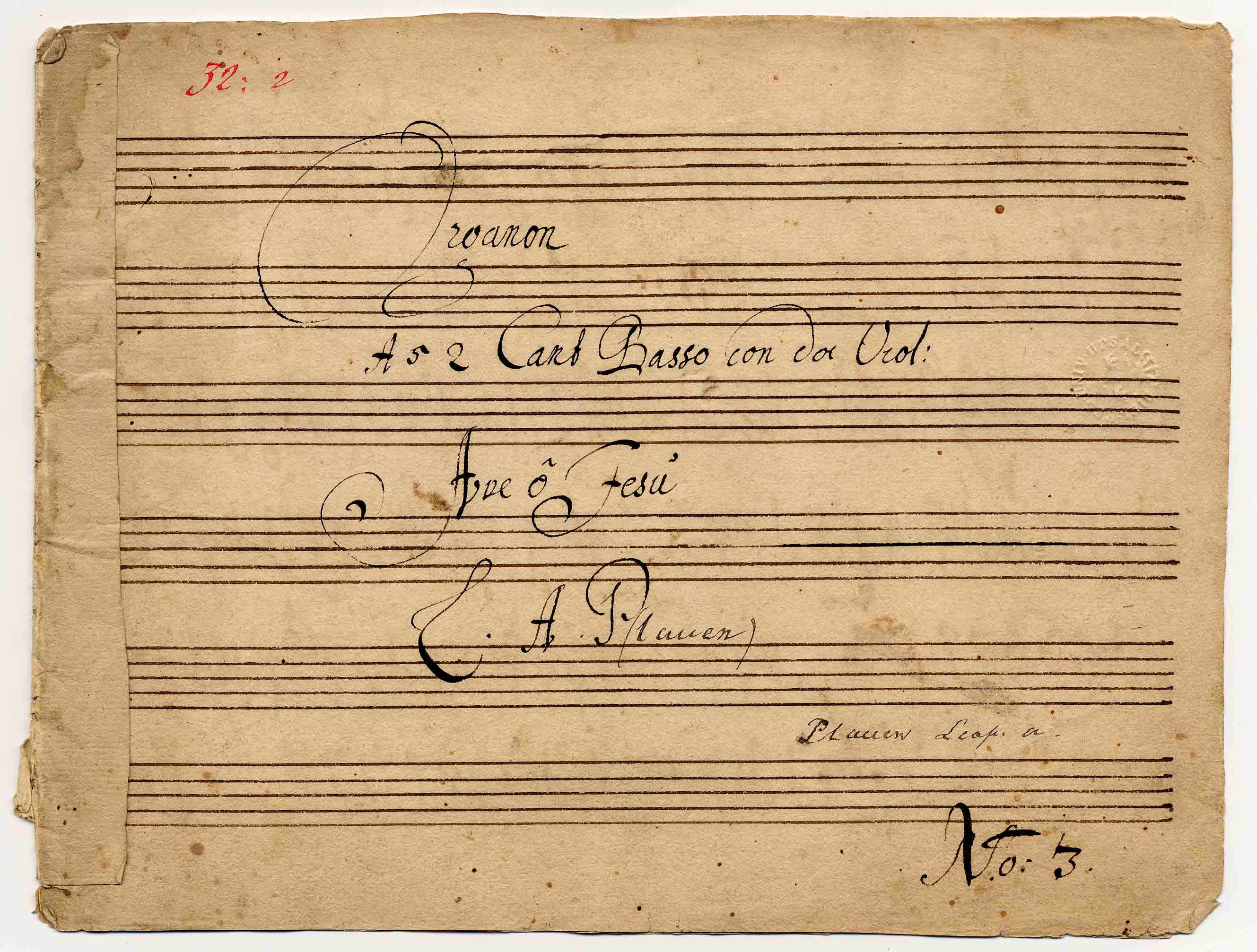 - Organon/A 5 2 Cant Basso con doi Viol:/Ave ô Jesu/ L. A. P/No: 3